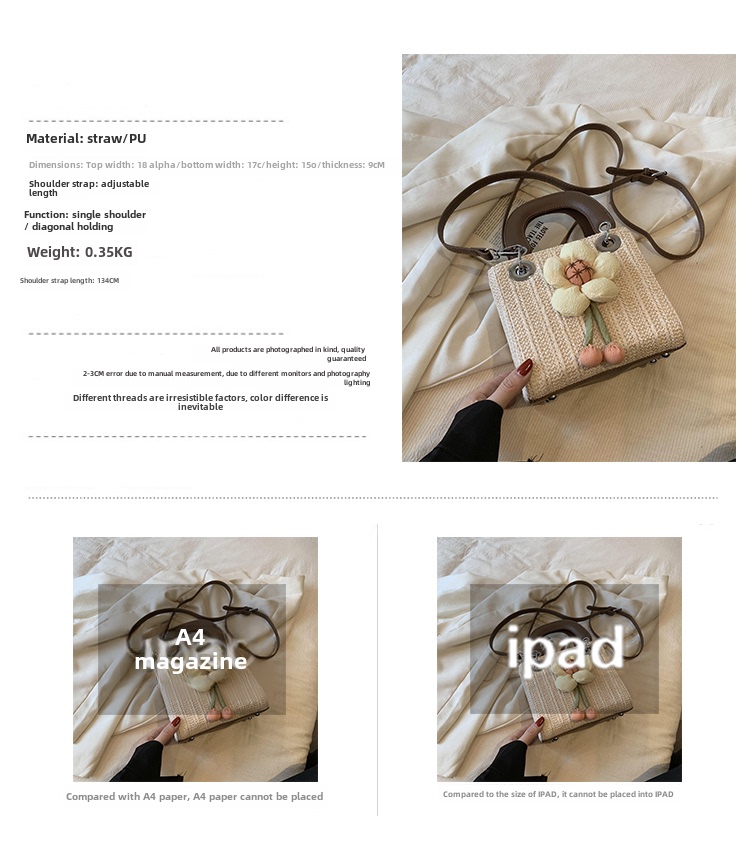 This elegant woven satchel bag is the perfect addition to your summer wardrobe. Its unique design and high-quality materials make it a popular choice for those who want to add a touch of seaside resort style to their outfits. With its spacious interior and crossbody strap, this bag is both stylish and practical. Make a statement with this 2025 new niche design inspired by Princess Diana.