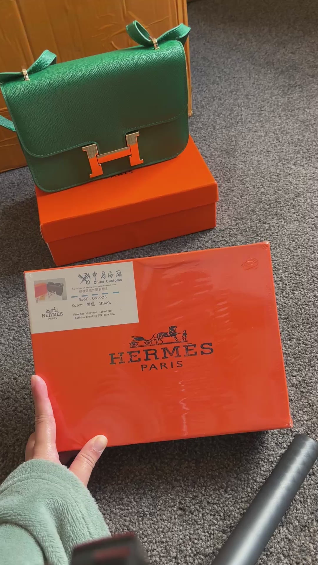 green bag has dents it’s a sample but I’m selling as well , it has very small scratches on the sling